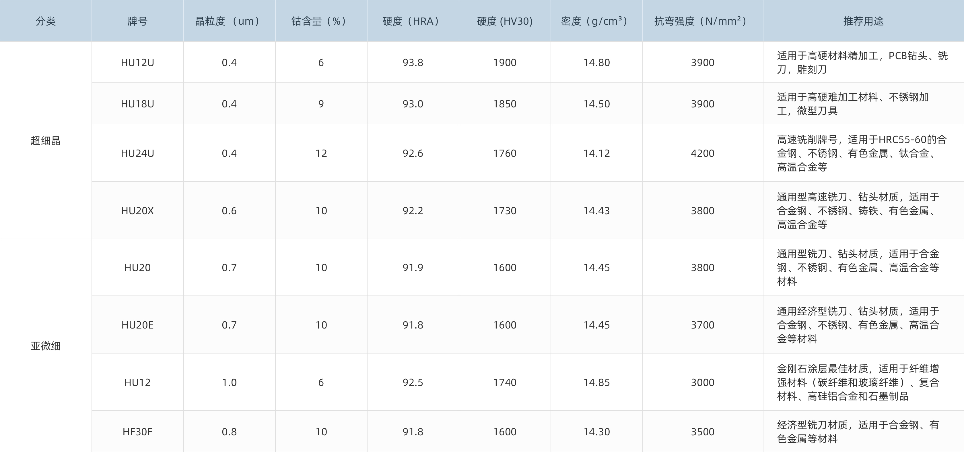 硬質(zhì)合金棒材是通過(guò)粉末冶金工藝制成的圓柱狀合金材料,根據(jù)刀具使用需求有外冷刀具用實(shí)心圓棒,也有內(nèi)冷刀具用單雙直孔、螺旋孔等。廣泛用作刀具材料,如銑刀、鉆頭、鉸刀等,用于切削鑄鐵、有色金屬、塑料、化纖、石墨、玻璃、石材和普通鋼材,也可以用來(lái)切削耐熱鋼、不銹鋼、高錳鋼、工具鋼等難加工的材料。